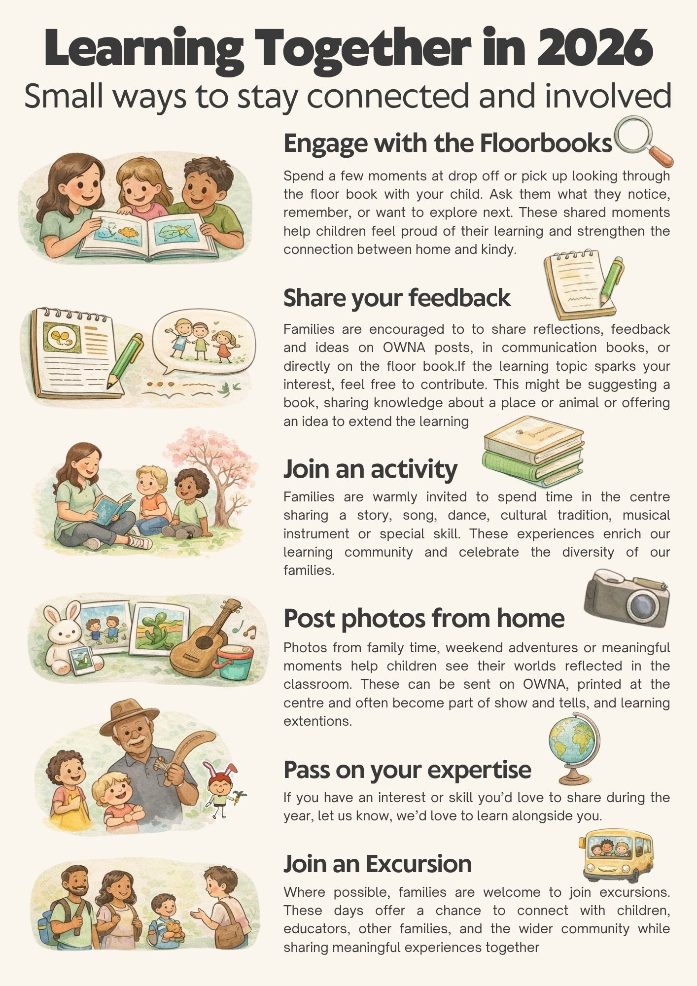 But that’s not all – we’ll also sprinkle in some of our tips and tricks, share children’s achievements (big and small), and maybe even a recipe or two that are both nutritious and kid-approved. Our goal is to create a newsletter that not only informs but also entertains and creates a sense of community among all of us. We’re all in this together, after all, and we can’t wait to share this journey with you through the pages of our newsletter.